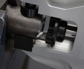 Pohonná jednotka může být instalována jak v ose, tak i kolmo k opracovávané trubce, což zaručuje bezpečnou a komfortní obsluhu.